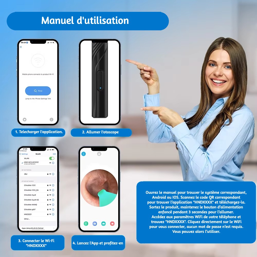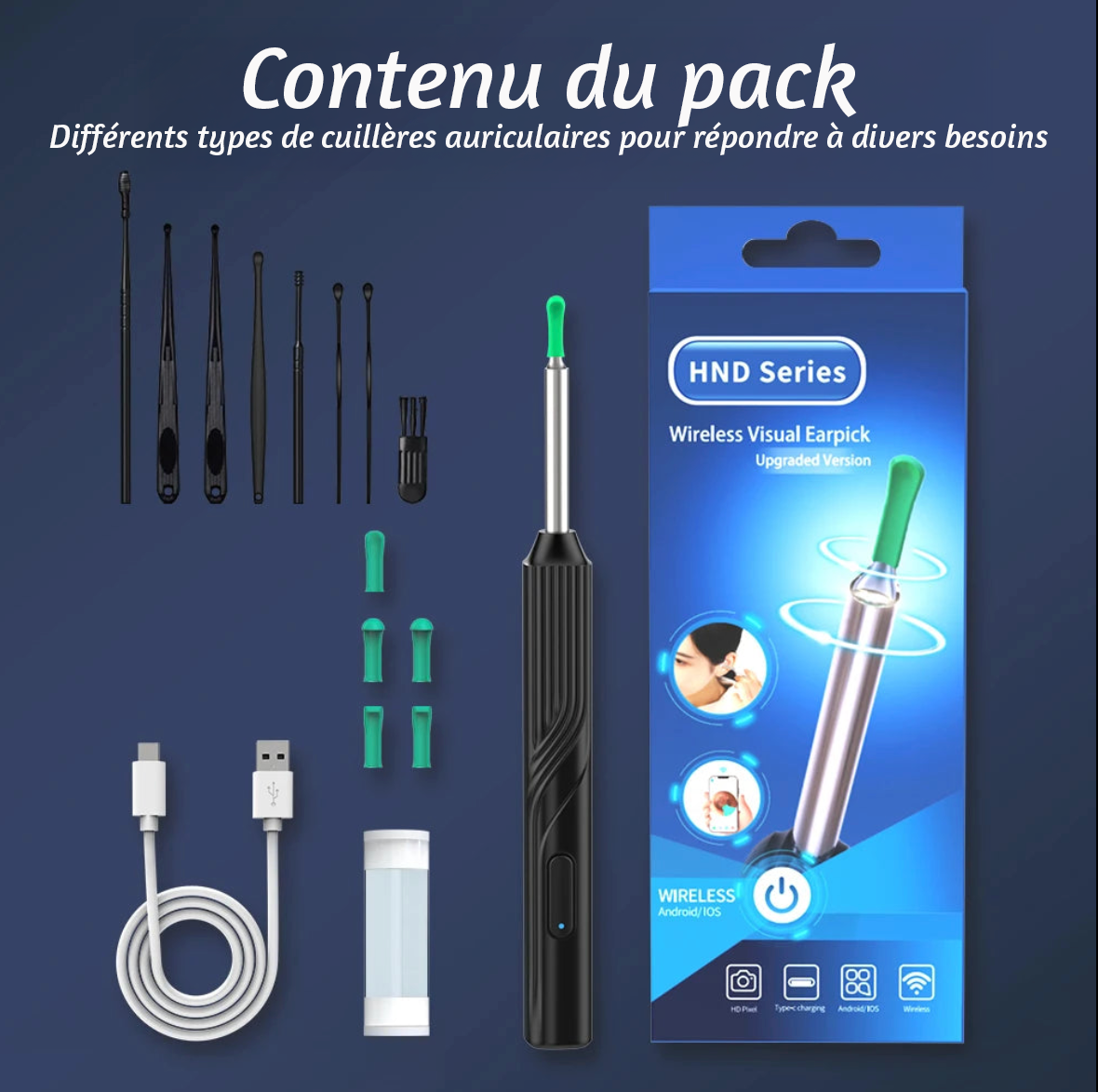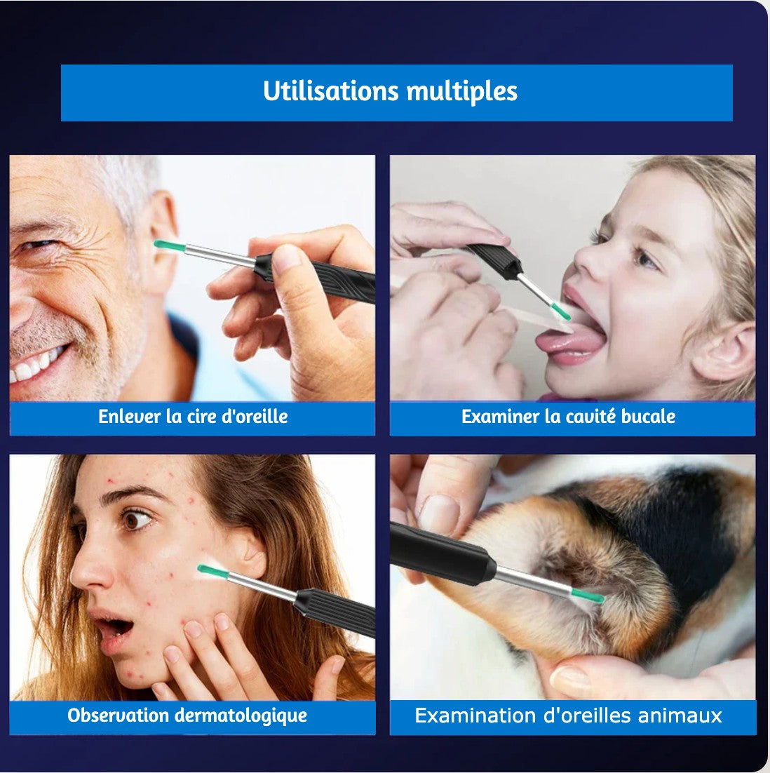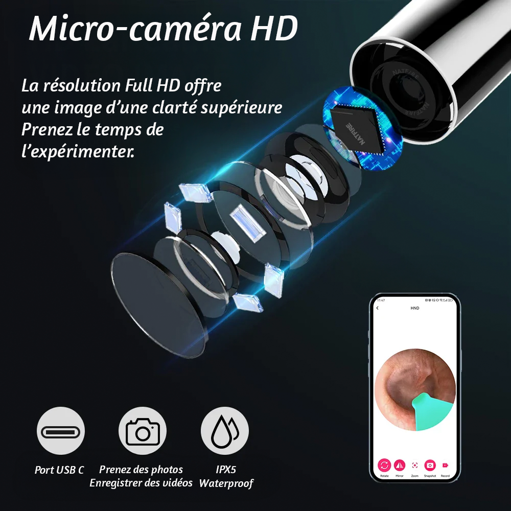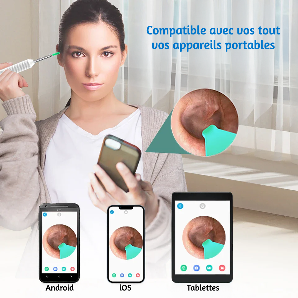 Grâce à notre otoscope intelligent, vous pouvez désormais observer l'intérieur de votre oreille en temps réel, et la nettoyer de manière douce, précise et sécurisée. Une technologie connectée pensée pour votre santé auditive.